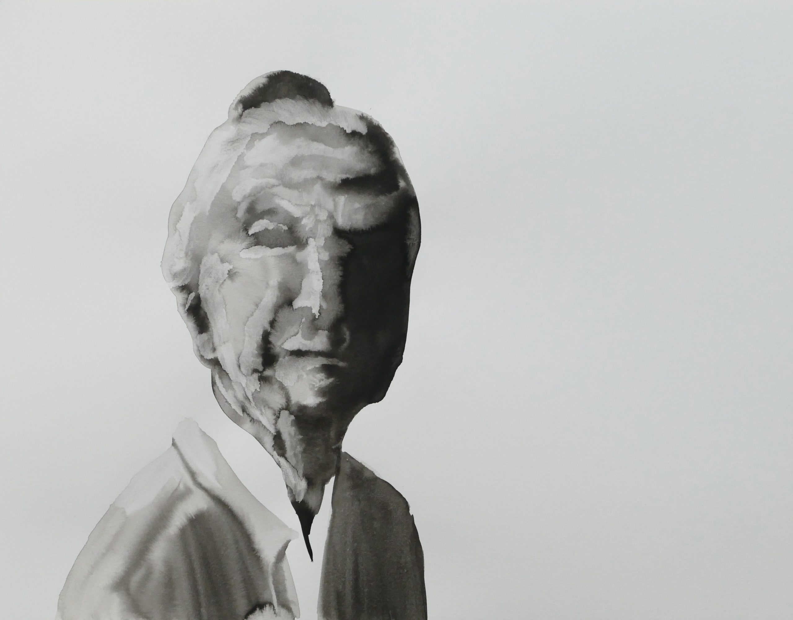 If I ask the same question out into the cosmos, I will get a very similar reaction. However, in the second case, the silence is vacuum-induced, perpetual and far less funny. Because for our universe (the visible part of which contains 70 trillion sun-like stars) Frida and Vladimir are completely equal, furthermore equally insignificant! The basic idea for my portrait series with the corresponding title „Space Forgets Everybody“ is derived from this very principle of cosmic indifference. Here I portray various personalities with watery ink and exhibit them in randomly composed groups. In this way, historical figures of light appear on the wall alongside serial killers, professional athletes alongside dictators and actors alongside politicians on an unusually equal footing. Due to the special painting technique, their faces appear fleeting, in the process of dissolving, but still just identifiable to the viewer. Due to the lack of thematic cohesion, their common denominator is ultimately reduced to the human condition and its transience. The universe forgets us all, regardless of who we are or were when we were alive.